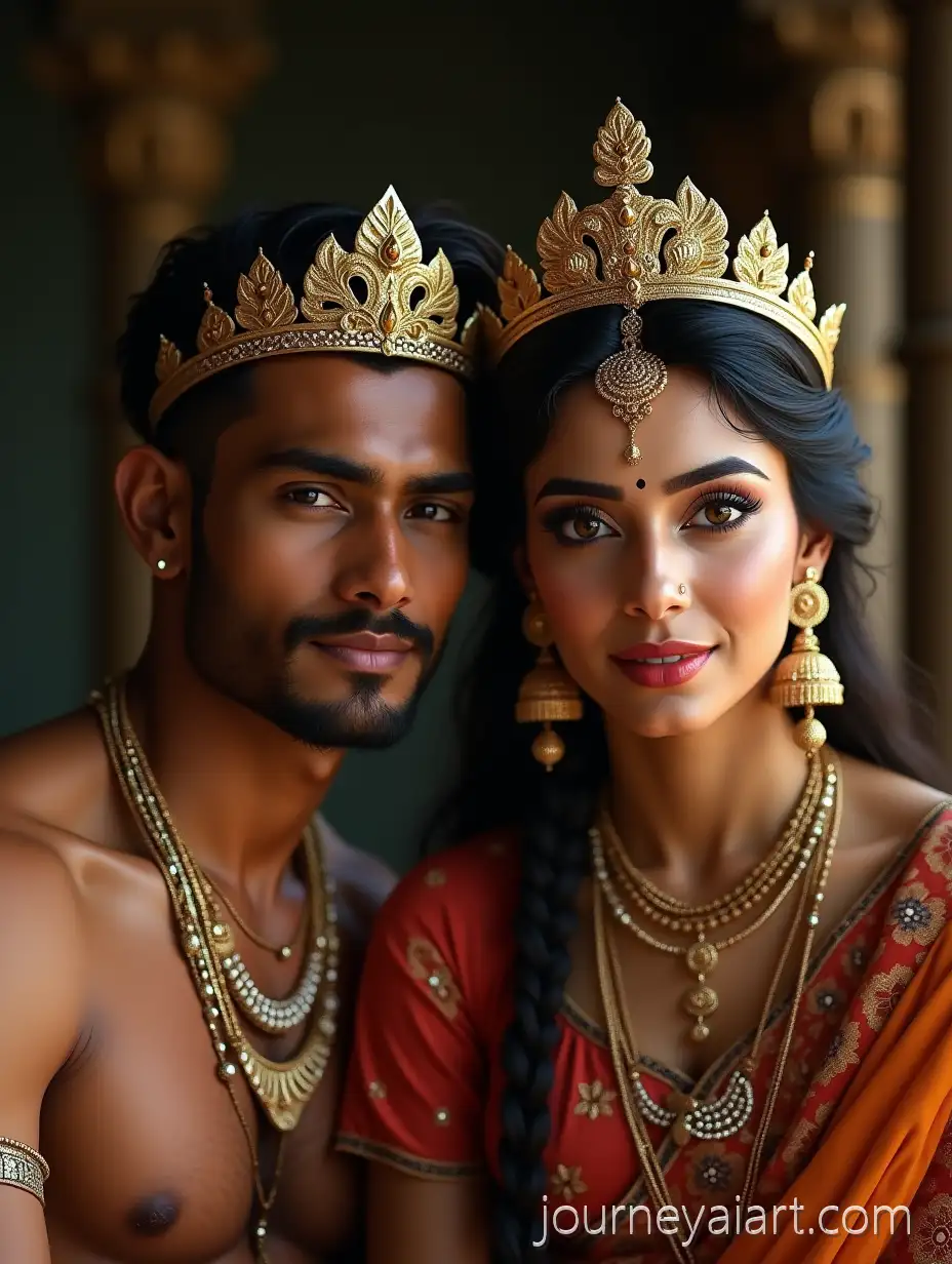 Portrait-of-Handsome-Young-Indian-Man-and-SerIndian-man-and-goddessene-Goddess-in-Traditional-Attire