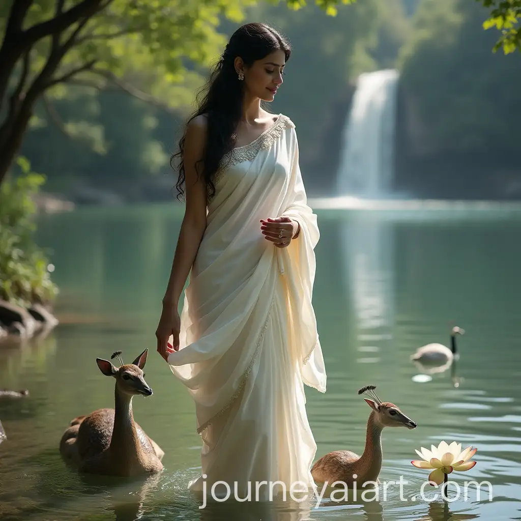 Elegant-Indian-Woman-in-White-Saree-inAI-Art-Prompt-Expansion-a-Serene-Outdoor-Setting