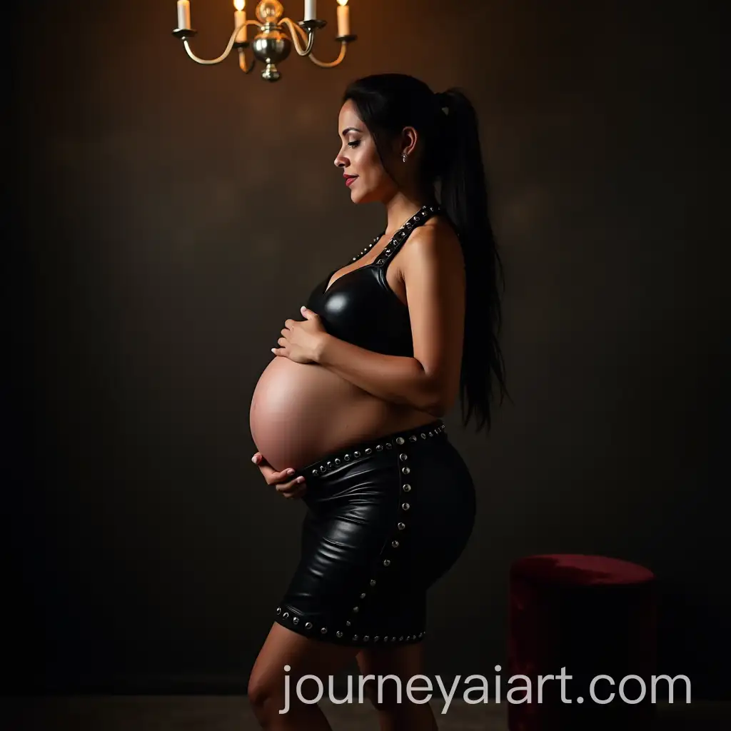 Pregnant-Woman-in-Casual-Red-SheAI-Image-Prompt-Expansioner-Nightgown-with-Light-Beige-Wall-Background