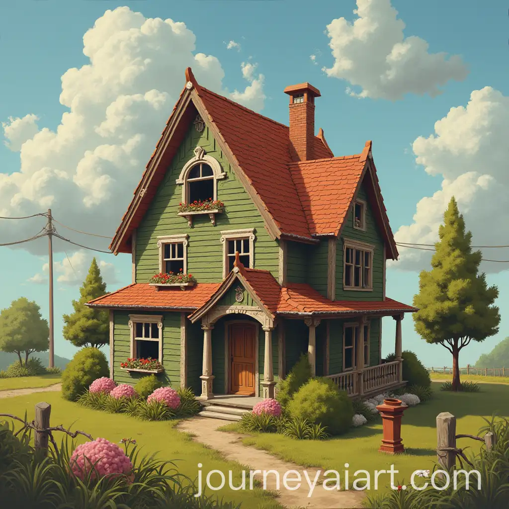 PastelColoredAI-Image-Prompt-Expansion-Large-House-and-Vibrant-Small-House-in-a-Charming-Setting