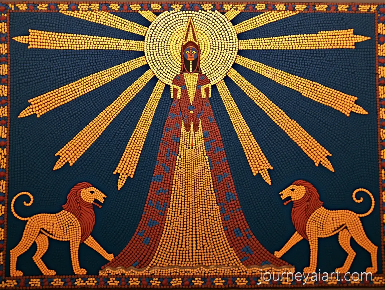 Ancient-SAncient-Sumerian-Inanna-Mosaicumerian-Mosaic-of-Queen-Inannas-Descent-with-Sacred-Lions-and-Mystical-Patterns