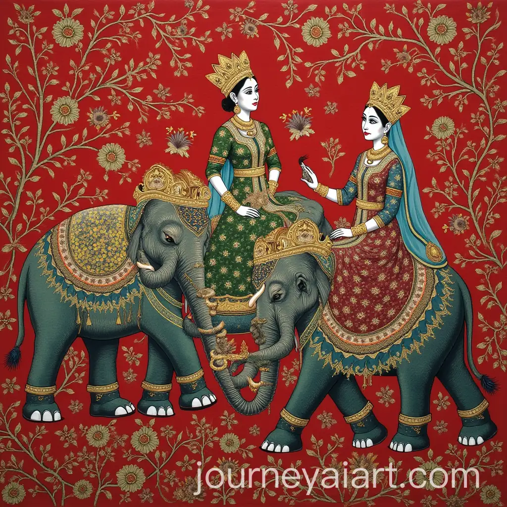 South-Asian-Women-Relaxing-and-Enjoying-Tea-in-a-Vibrant-Lawn-in-Sadequain-Style