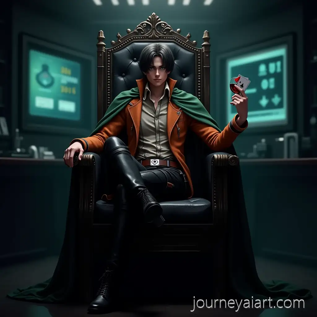 Levi-from-Attack-onLevi-on-Gothic-Throne-Titan-Seated-on-Gothic-Throne-Holding-Ace-of-Hearts-and-Red-Wine